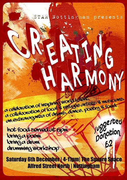 On Saturday 6th December at the Refugee Forum, Students Action for Refugee's presents "Creating Harmony" an event that's going to be full of good food, good music and good times. You should probably go.